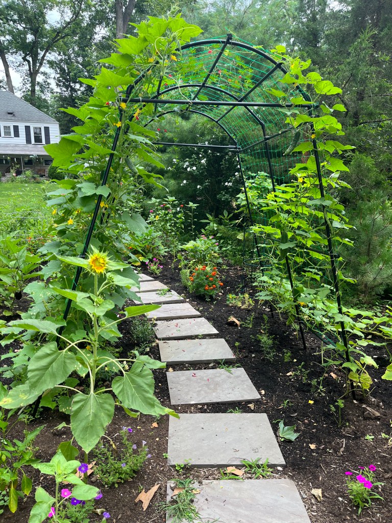 We grow our cucumbers on this trellis from Amazon! We have found that it has lasted many years and is the perfect height to walk through and grab cucumbers.