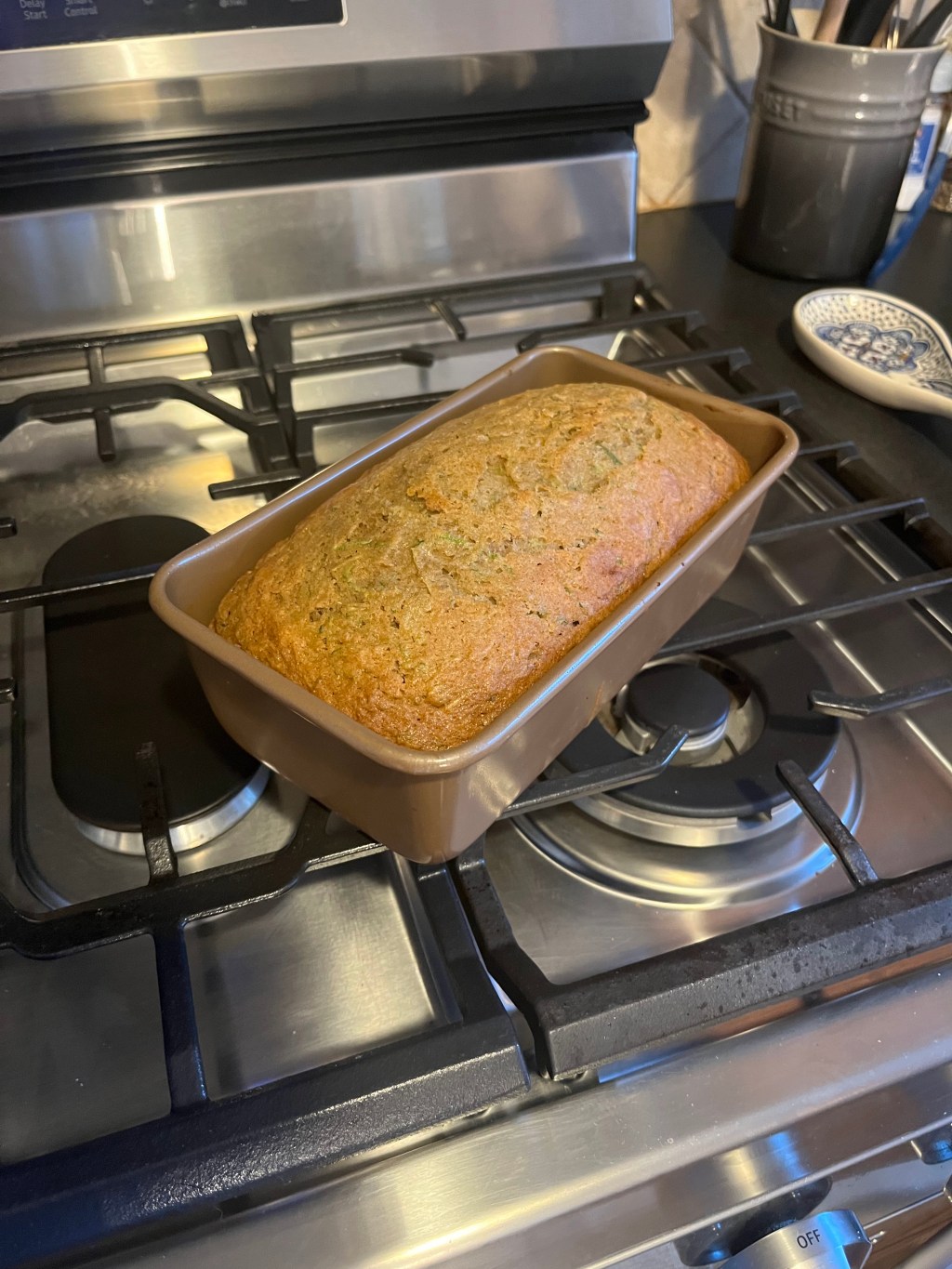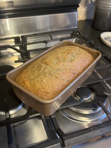 - I use this Calphalon loaf pan to bake the bread.